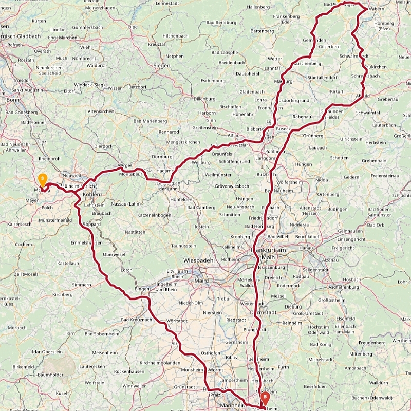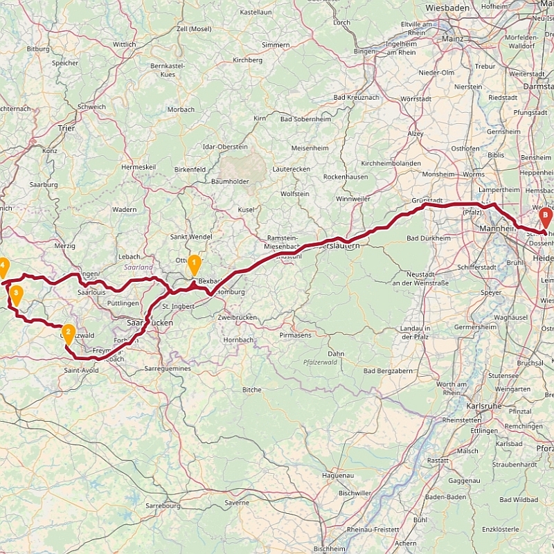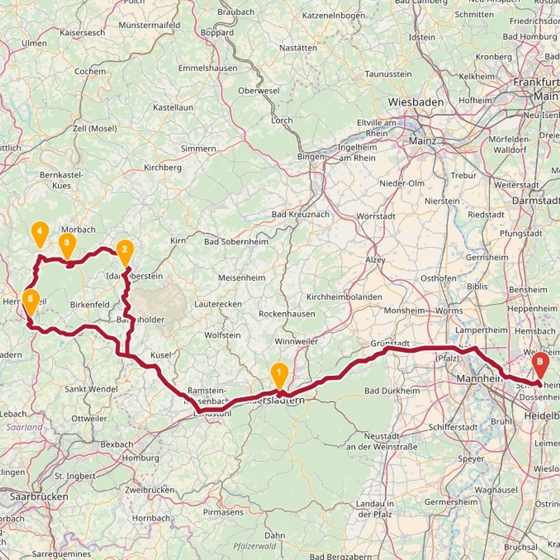 Kaiserslautern » Landstuhl » Birkenfeld » Nonnweiler » Erbeskopf » Thalfang |