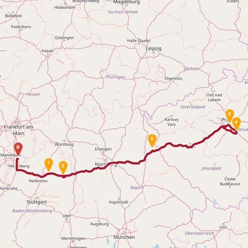 Öhringen » Schwäbisch-Hall » Vohenstrauss » Zvánovice » Popovice » Prag |