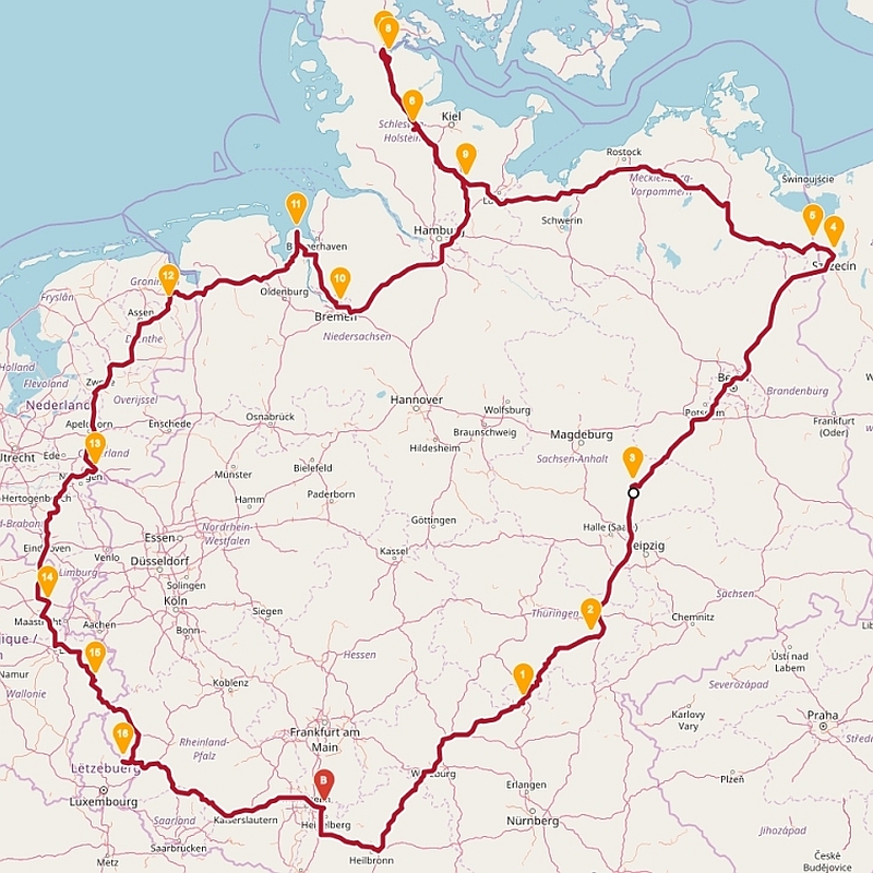 Coburg » Neustadt a.d.O. » Roßlau » Szczecin » Blankensee » Osterrönfeld » Padborg » Flensburg » Bad Segeberg » Bremen » Fedderwardersiel » Veendam » Groessen » Genk » Malmedy » Berdorf |