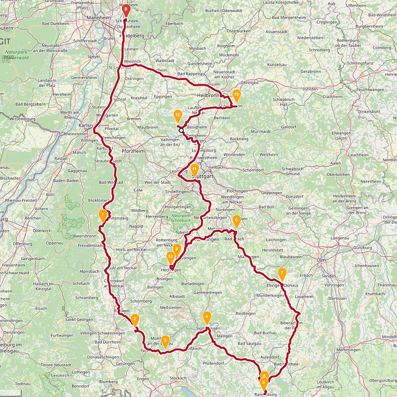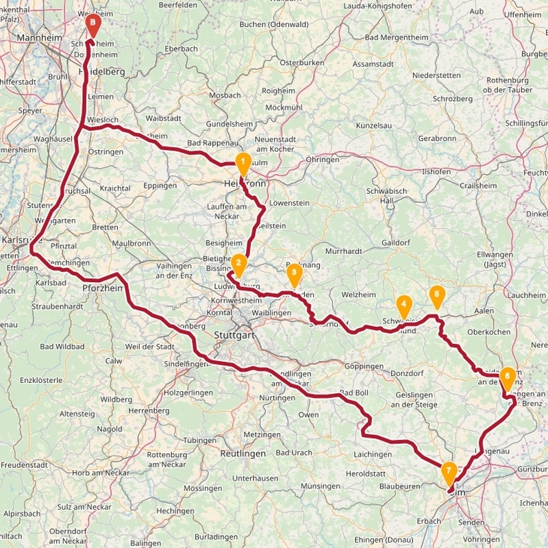 Heilbronn » Ludwigsburg » Winnenden » Schwäbisch-Gmünd » Böbingen a.d.R. » Horn » Bolheim » Ulm |